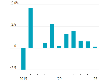 格陵兰岛地区GDP增长率(数据来源:世界银行、丹麦央行)